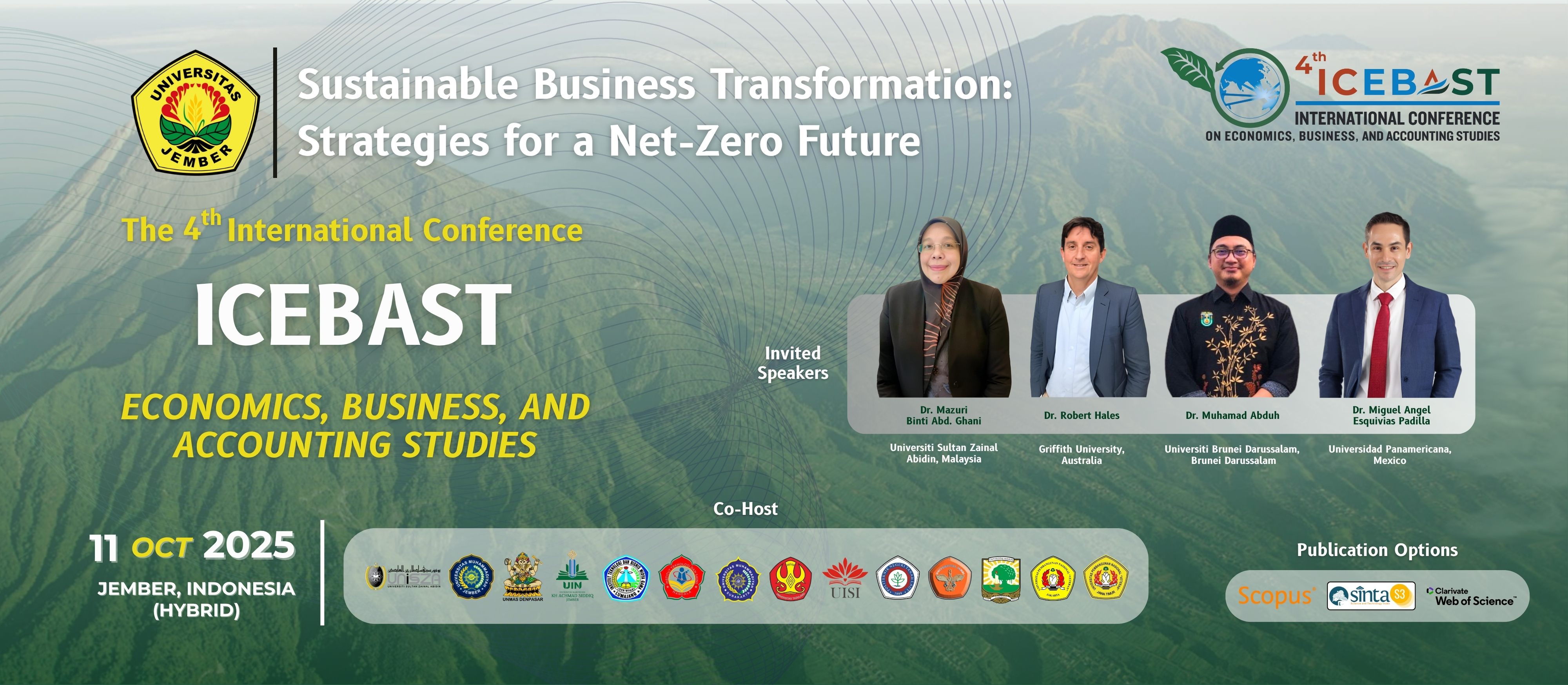 The 4th International Conference on Economic, Business, and Accounting Studies (ICEBAST 2025) with the theme “Sustainable Business Transformation: Strategies for a Net-Zero Future” aims to gather leading academics, researchers, practitioners, policymakers, and students from around the world to exchange insights and share cutting-edge research on all aspects of economics, business, and accounting in the era of sustainability. The conference provides a premier interdisciplinary platform for presenting and discussing the most recent innovations, trends, challenges, and practical solutions in areas such as sustainable business models, green finance, ethical accounting, ESG integration, digital transformation, Islamic business ethics, and inclusive economic growth. It also encourages collaboration between global and local perspectives to accelerate the journey toward a low-carbon, sustainable future.